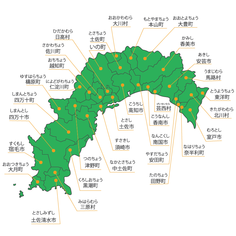 メモ:面積では高知県が一番大きが、県の人口では一番少ない。
